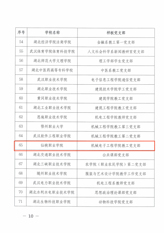 近日,湖北省教育工作委员会公布首批全省高校基层党建示范创建工作验收结果,我院机械电子工程学院教工党支部顺利通过首批“全省高校党建工作样板党支部”验收。