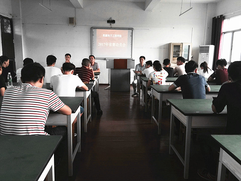 为充分做好2017年湖北省职业院校技能大赛的备战工作,力争在省赛中取得好成绩。8月25日下午,机械电子工程学院在科技楼302举办技能竞赛省赛学生动员大会。胡华文院长、肖少华书记、张汉飞副院长、黎万平副院长以及各参赛项目的指导教师、参赛选手参加了会议。据悉,我院30多名学生将组成6支队伍参加本次技能大赛,其中分别是电子产品设计与制作队伍、物联网应用技术队伍、工业机器人技术队伍、数控系统安装调试与维护队伍、汽修检测与维修队伍、现代电器安装调试与维护队伍。