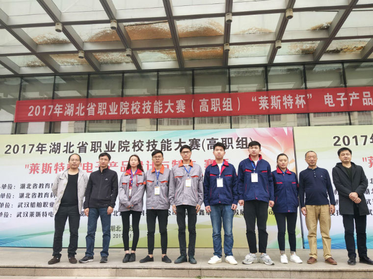 本次竞赛也在武汉船舶职业技术学院举行,来自湖北省的60只代表队参加比赛。此次竞赛需要选手在9小时内完成电子产品的电路设计、程序设计、PCB制作、故障排除、并将原型产品制作成形,以及完成产品说明书、产品设计文件、设计技术报告等文件的编写,同时对产品功能进行演示,完成智能小车自动寻迹、超声波避障、红外探测、2.4G通信、zigbee遥控、自动入库等功能,对参赛学生来说技术难度大,技能要求高,工作任务重。