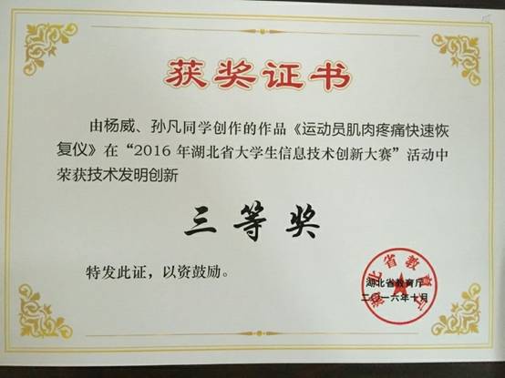 机电学子荣获“2016年湖北省大学生信息技术创新大赛”三等奖