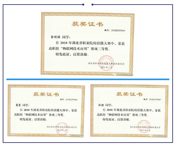 物联网技术应用赛项获得推荐队三等奖和抽测队二等奖。