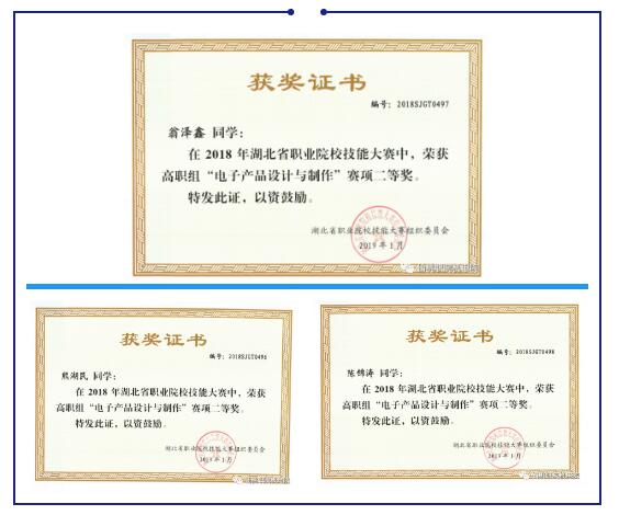 电子产品设计与制作赛项获得推荐队二等奖和抽测队三等奖。