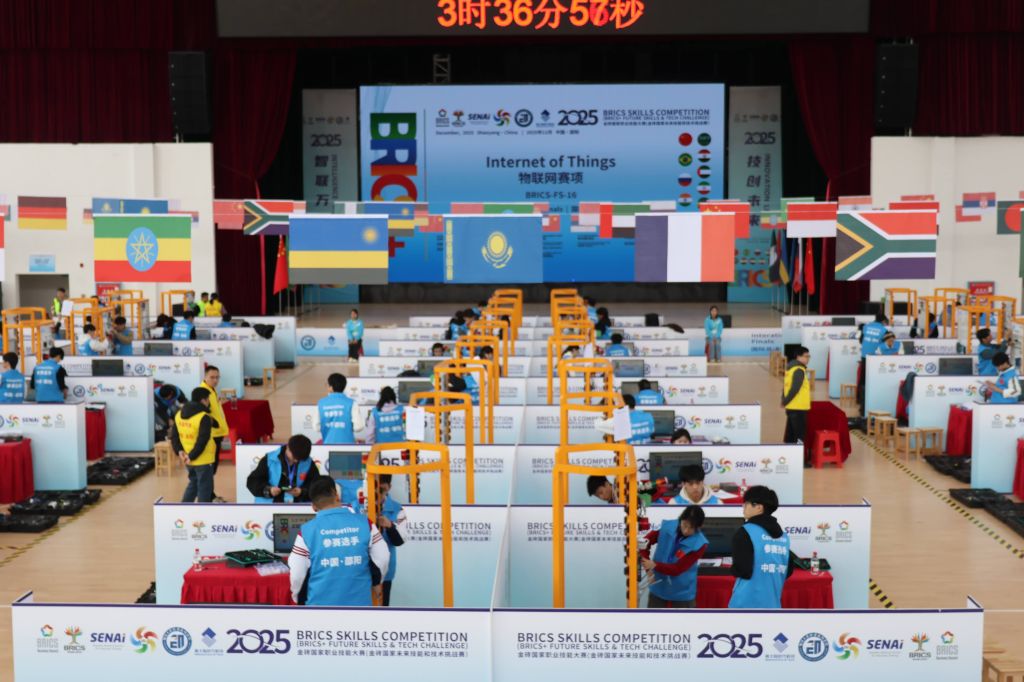 物联网赛项以“聚焦高端制造、数字经济、新产业、新业态、新技术”为重点领域,旨在提升金砖国家及“金砖+”国家职业院校师生在创新、协调、组织、合作等方面的能力,推动技能人才培养标准与国际产业需求对接。竞赛内容紧密围绕物联网系统集成、数据采集分析与智能控制等核心技术,通过设置贴近真实产业场景的综合性任务,全面检验选手的技术应用、项目管理与团队协作能力。