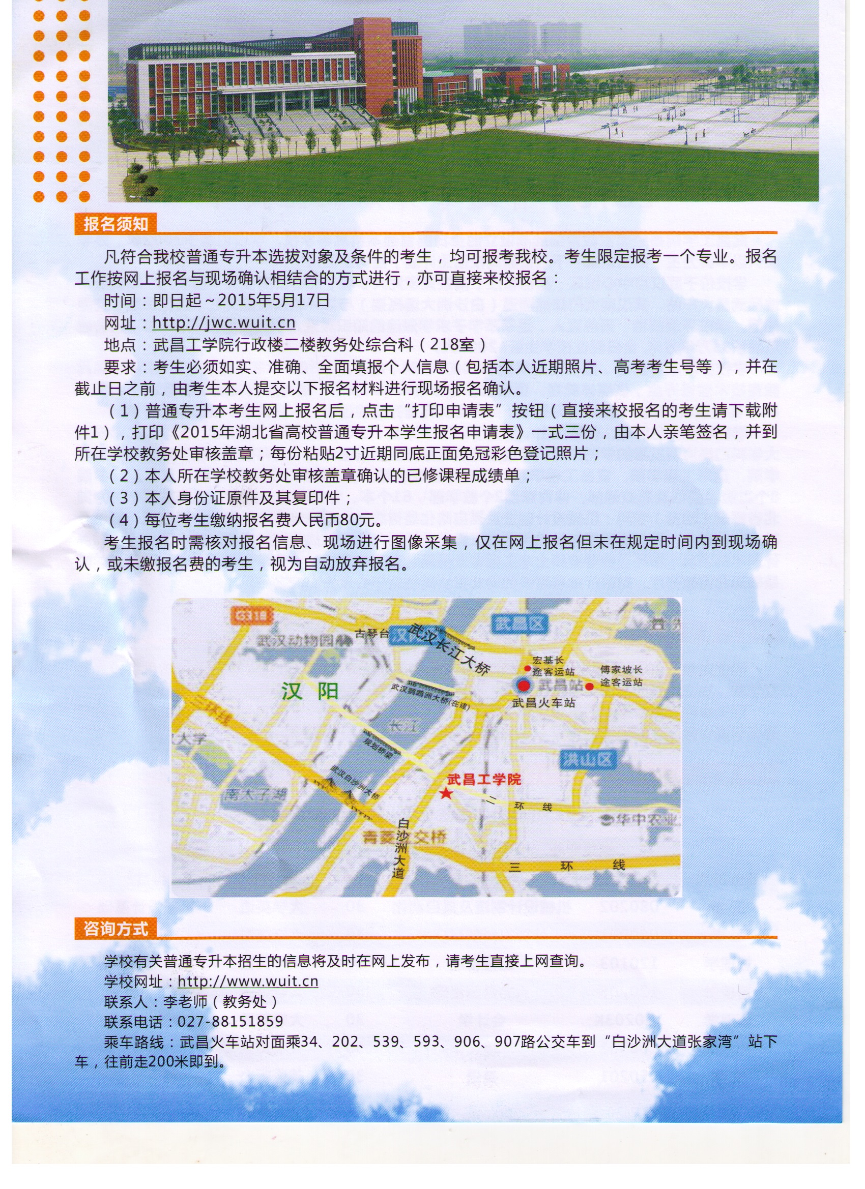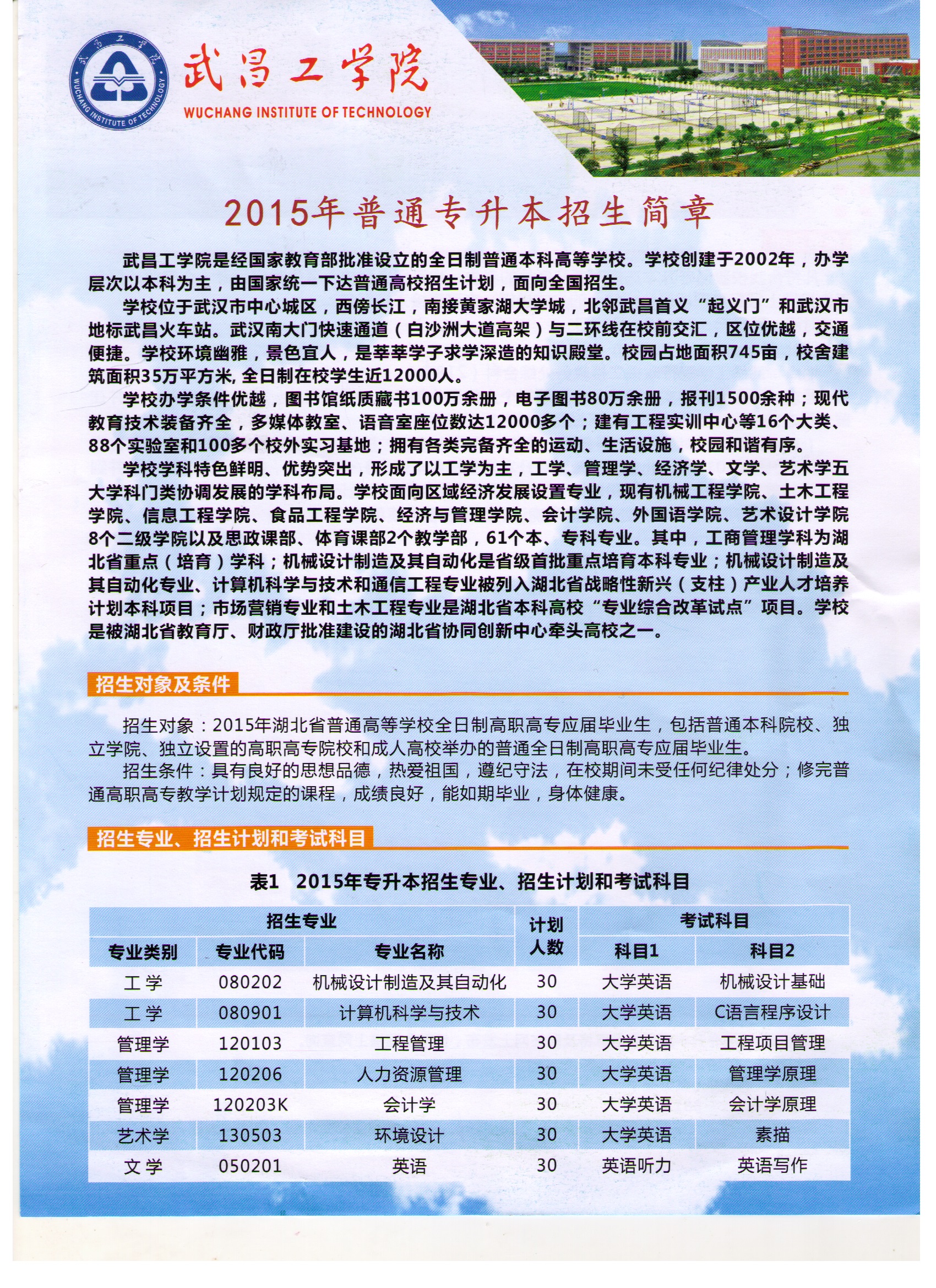 武昌工学院2015年专升本招生简章