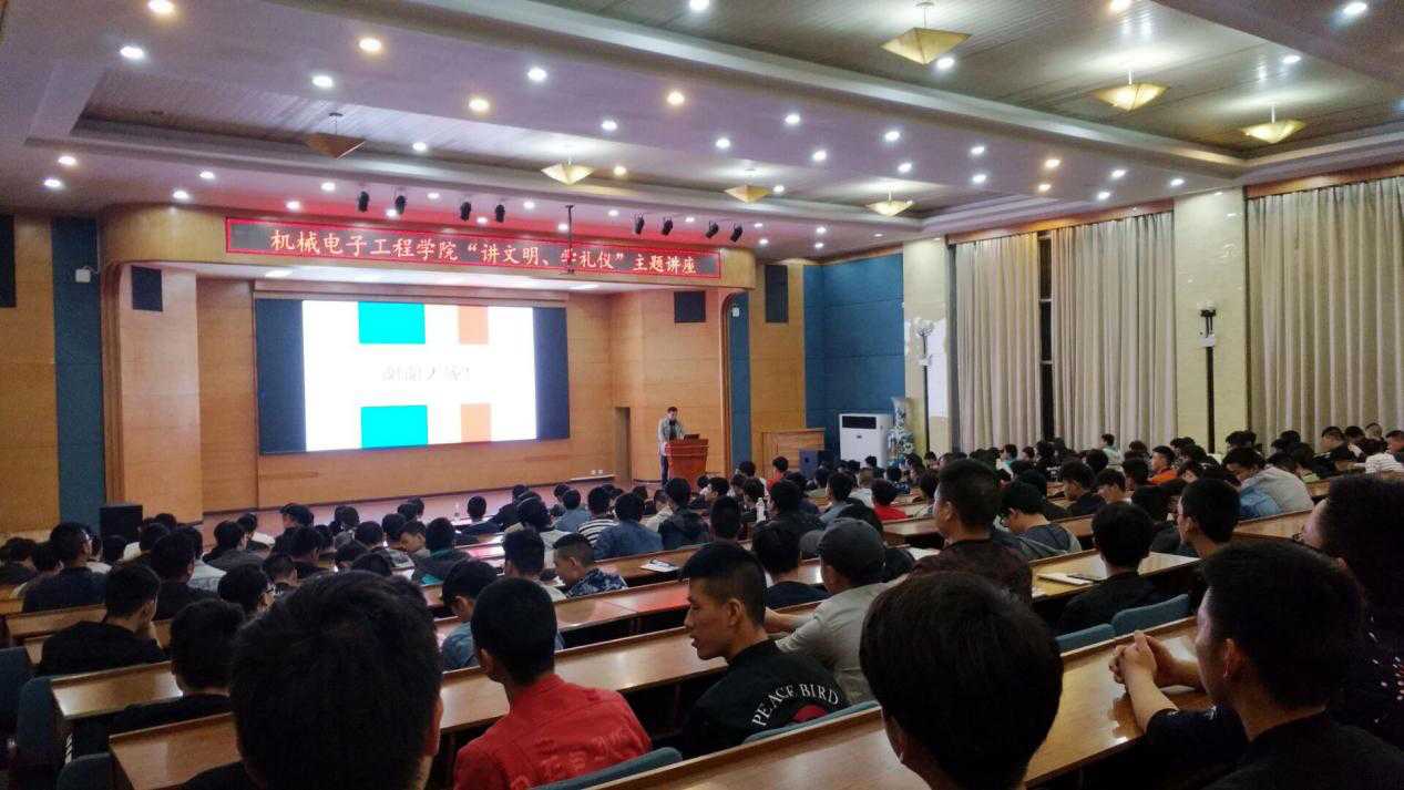 4月25日晚,机械电子工程学院“讲文明、学礼仪”主题讲座在学术交流中心圆满地落下帷幕。本次主题讲座的主讲人是仙桃职业学院语委办主任、国家级普通话测试员刘彩蓉。机械电子工程学院党总支副书记肖少华等学院领导和老师与350余名机电学子一同参加了本次主题讲座。