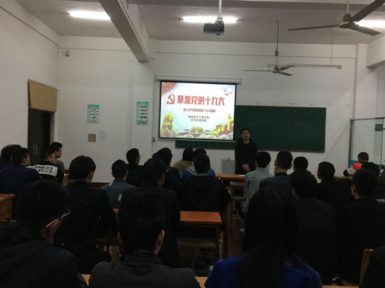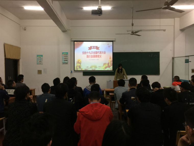 10月30日晚上,机械电子工程学院举行十九大精神宣讲会,机电学院邀请思政课部孙思老师为学生党员、入党积极分子、学生干部作十九大精神宣讲,重温入团誓词,引导学生学习十九大精神,积极践行社会主义核心价值观,成为一名优秀的青年大学生。
