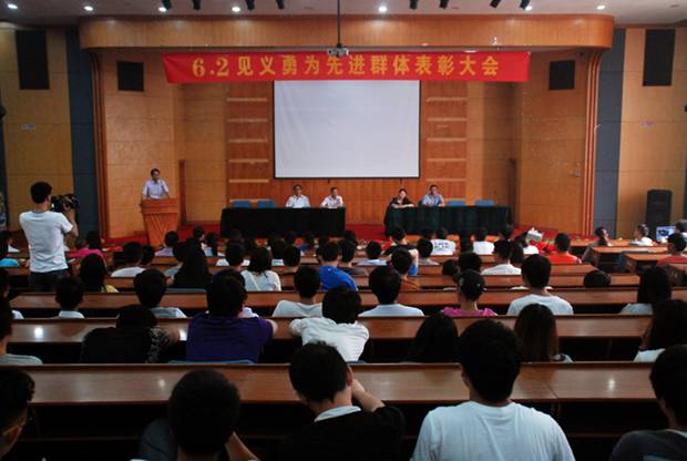 在汉江边游玩时,看到4青年在江水中挣扎,我院计算机科学技术学院学生邓南昕、李青、王意、吴全勇4位同学不顾个人安危,在湍急的江水中勇救溺水者。6月12日,市委政法委副书记周国怀、市见义勇为基金会副秘书长肖金洲、团市委书记王小鹏一行专程来到我院,为他们颁发了“仙桃市见义勇为先进群体”荣誉证书和2万元奖金。