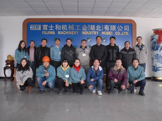 机电学院一行与富士和机械负责人、我院优秀毕业生合影