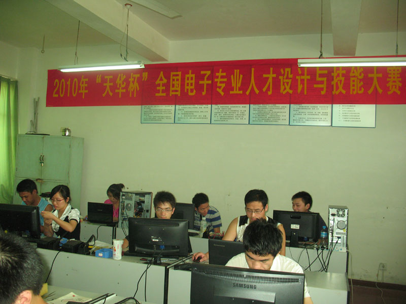 2010年7月17日、18日我院组织学生赴武汉职业技术学院,参加了由工业和信息化部举办的“天华杯”全国电子专业人才设计与技能大赛湖北省分赛区预赛(大学组)。我院学生参加了“单片机设计与开发”、“电子组装与调试”两个专业方向的角逐。