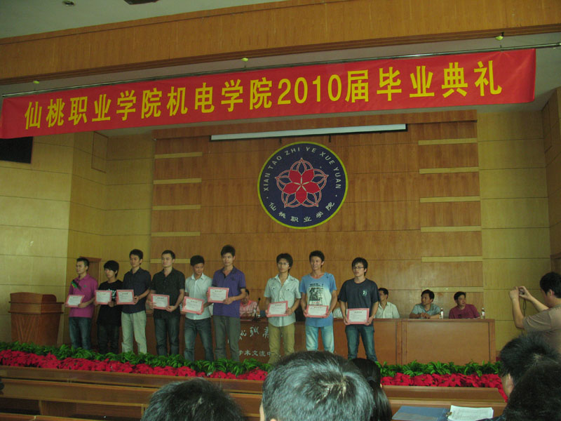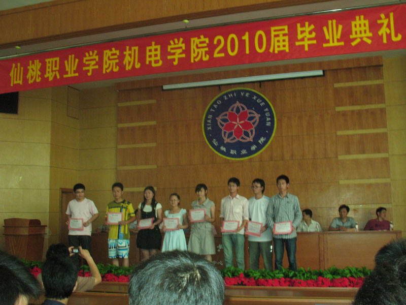 毕业典礼上,王招猛、周良山等80多名2010届“优秀毕业生”、 70多名优秀论文获得者和近百名优秀实习生获得了表彰,此外,还表彰了“天华杯”全国电子专业人才设计与技能大赛全国三等奖获得者王杰敏和赵光龙,表彰了全国大学生电子设计竞赛湖北赛区一等奖获得者赵光龙、周解桃和贾永朋,表彰了全国大学生电子设计竞赛湖北赛区成功参赛奖获得者江刚、刘海等18名学生。学院希望受表彰的同学在今后的学习和工作岗位上继续保持勤于思考、勇于实践的优秀品质,再接再厉,开拓创新,为母校增添新的光荣。