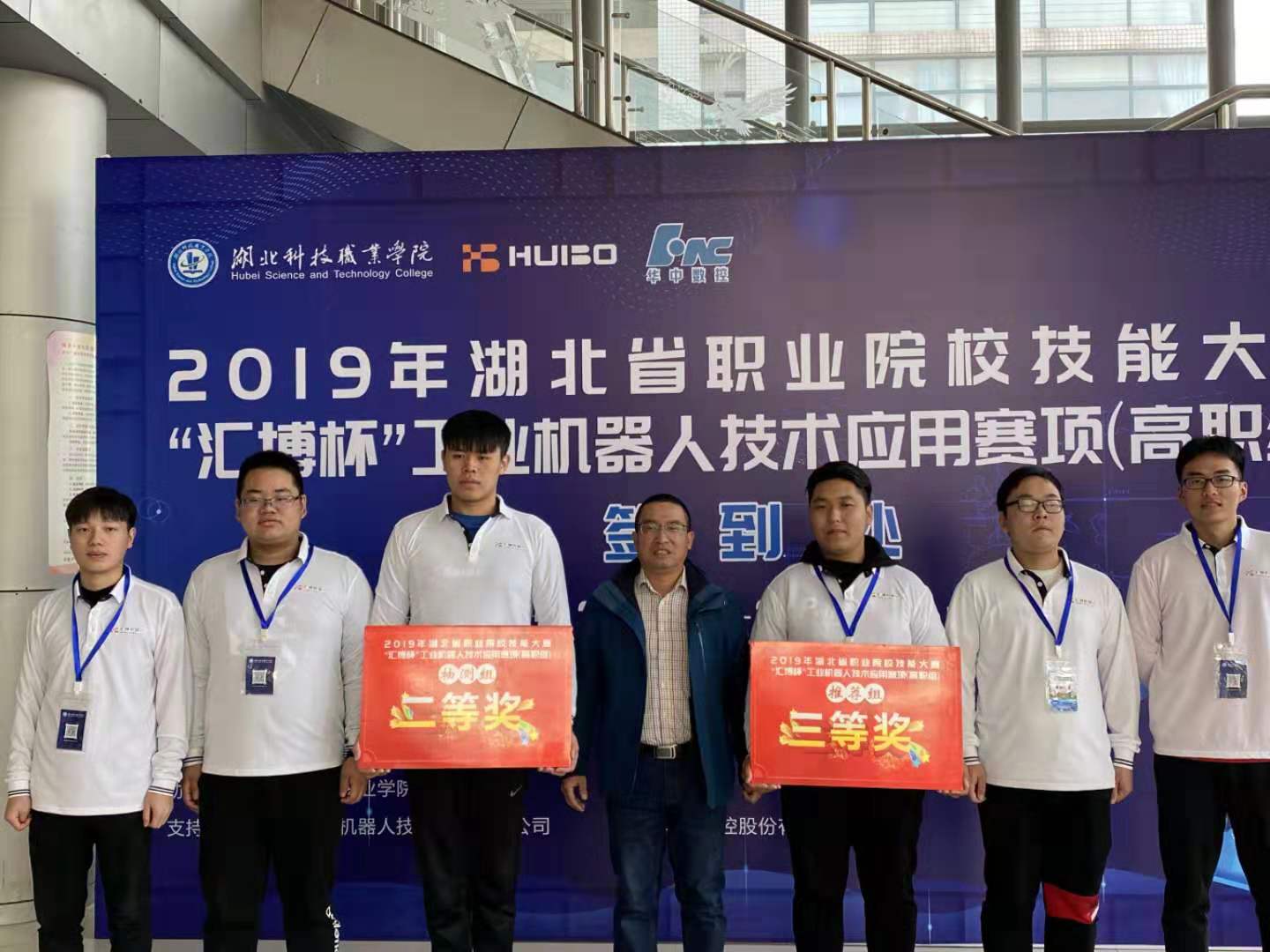 在工业机器人技术应用赛项中,机械电子工程学院张仕吉、李小龙、吕锐文获推荐团体三等奖,张勋、郭运龙、刘应杰获抽测团体二等奖。