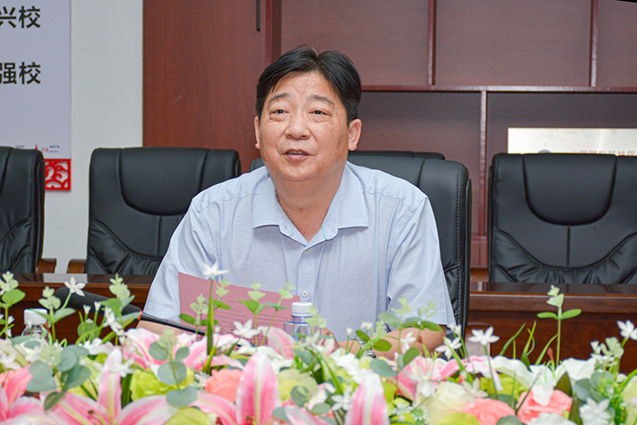 郭百高对丁德智一行来访表示热烈欢迎,与客人一同观看了学院宣传片,并介绍了学院基础设施建设、师资队伍建设、人才培养规划等方面的情况,希望两校优势互补、加强合作、共谋发展。