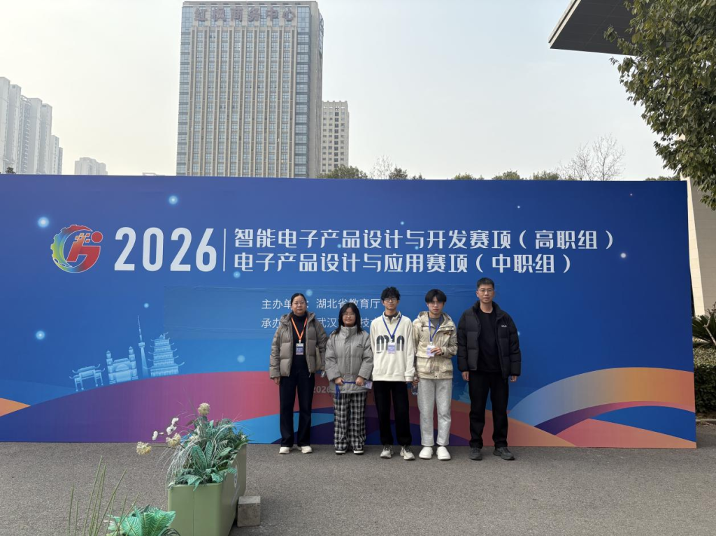 近日,2026年湖北省智能电子产品设计与开发赛项成功举办。全省共38支队伍参赛,竞争激烈。我校派出2支队伍参与角逐,最终,抽测组3名选手凭借扎实的技能,荣获二等奖。