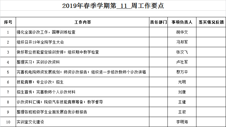 机电院2019年春季学期第“11周”工作要点