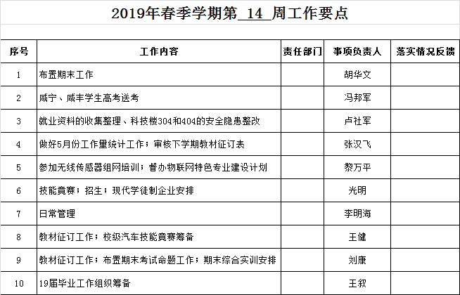 机电院2019年春季学期第“14周”工作要点