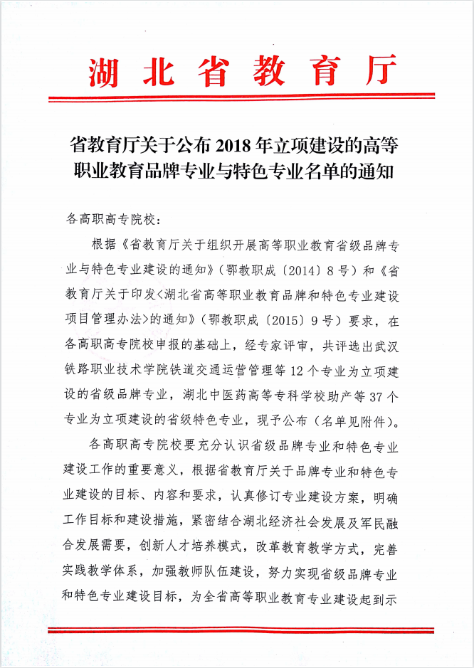 国家级骨干专业 湖北省特色专业 国家级教学名师 国家级精品课程